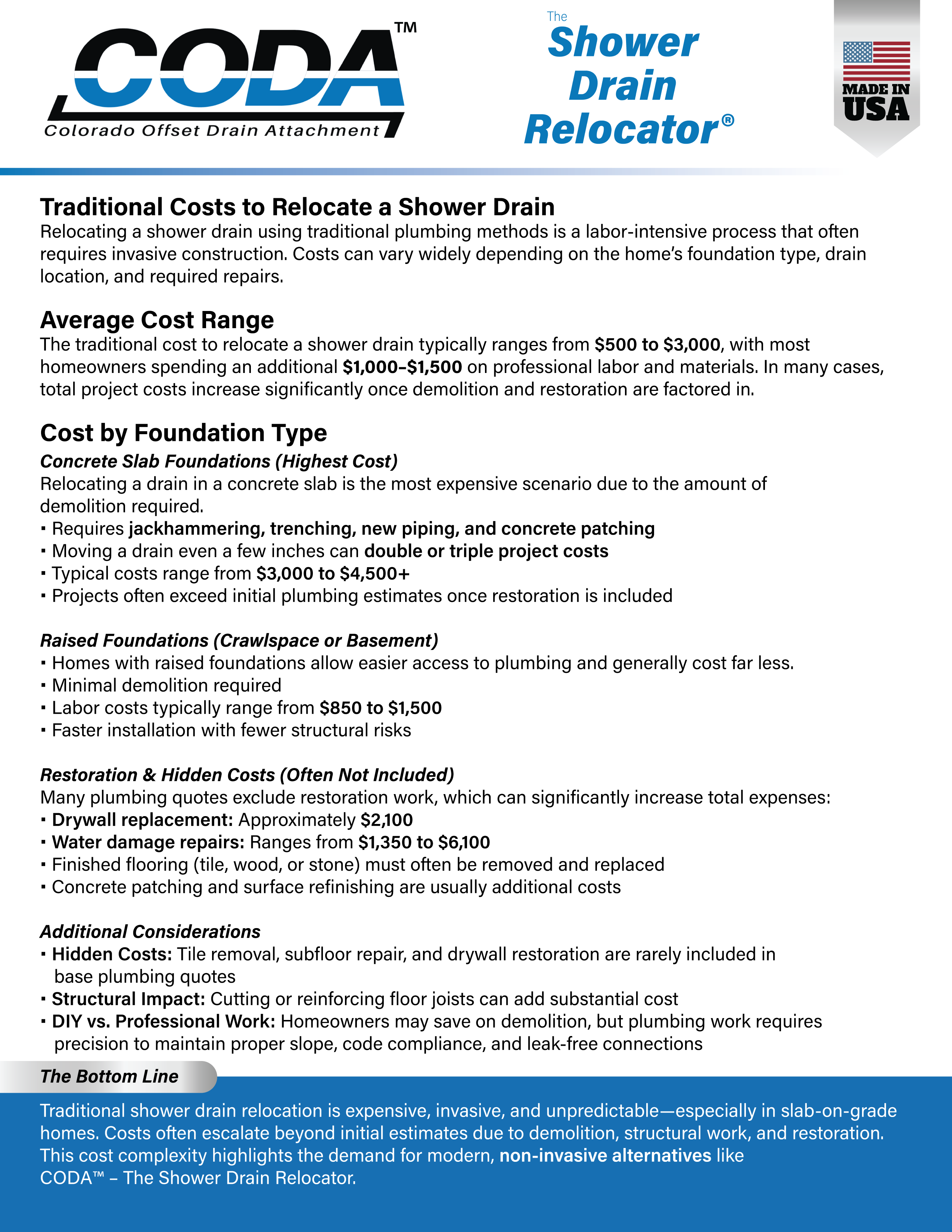 With Gruen's trusted quality and CODA's innovative design, our collaboration ensures that your shower drain relocation is smooth and efficient.