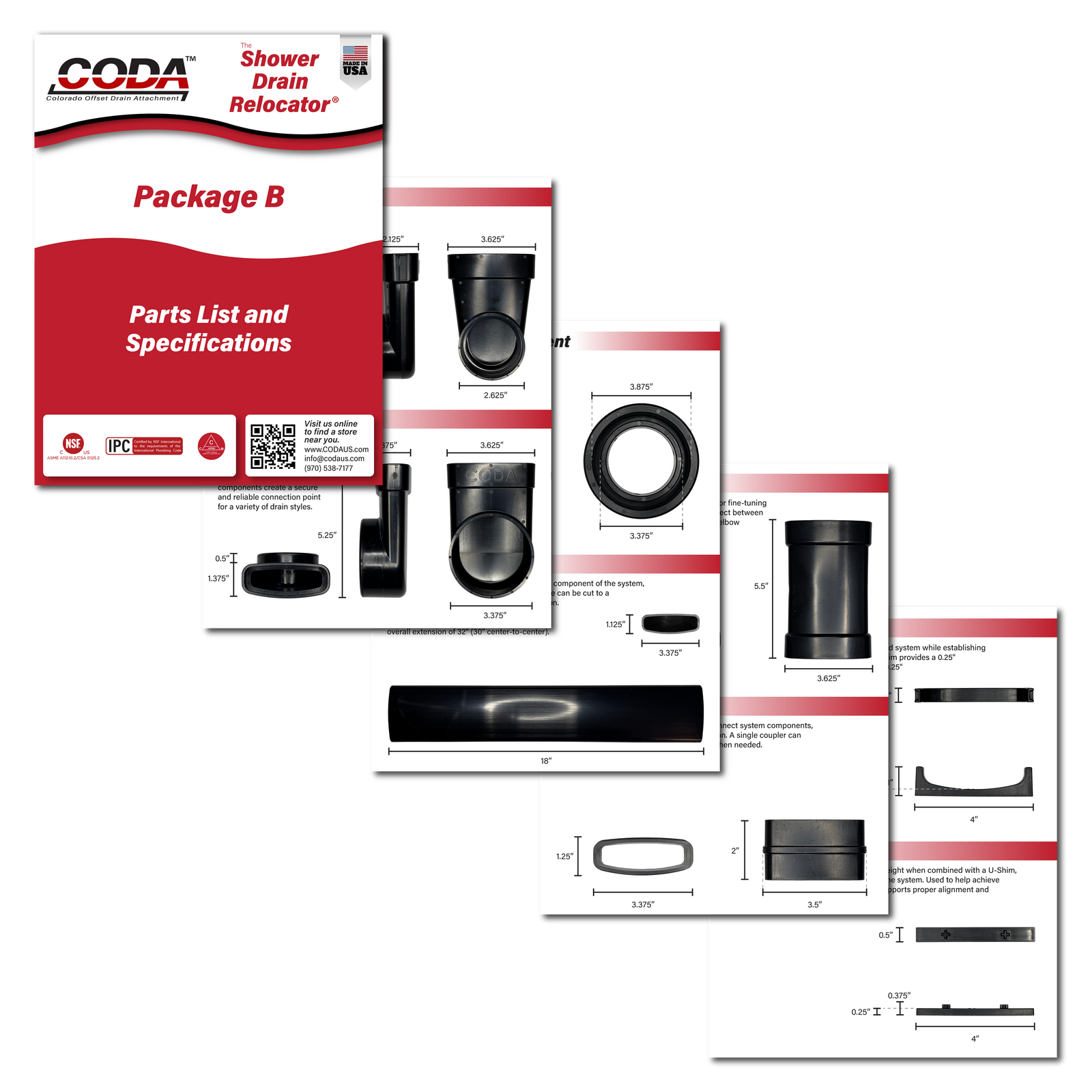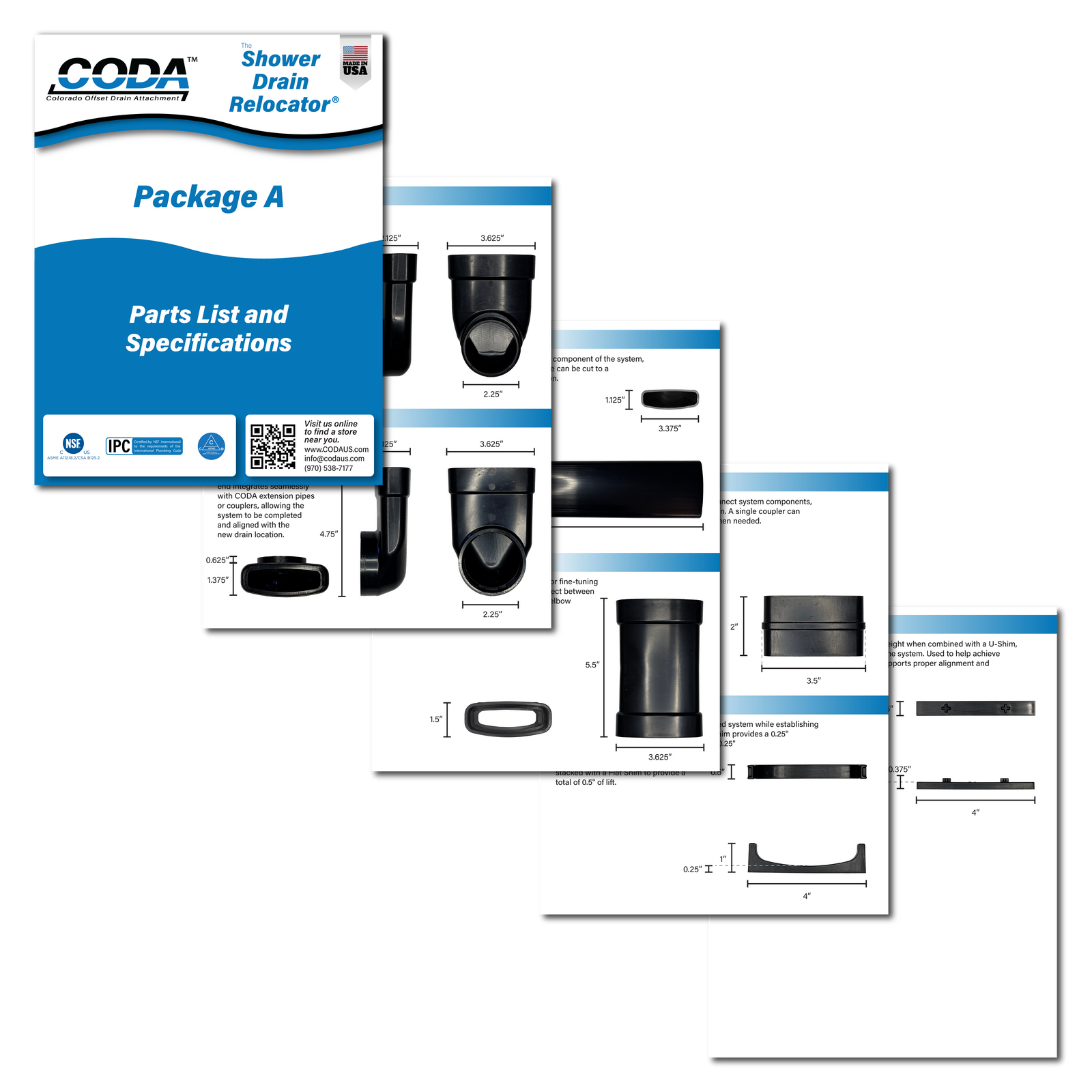Gruen drains are fully compatible with The Shower Drain Relocator, both Package A and Package B. Package A supports Gruen's standard 2-inch drains and linear drains. The standard or linear bond flange drains from Gruen integrate seamlessly with CODA's Package B, providing you with a versatile selection of drain options.