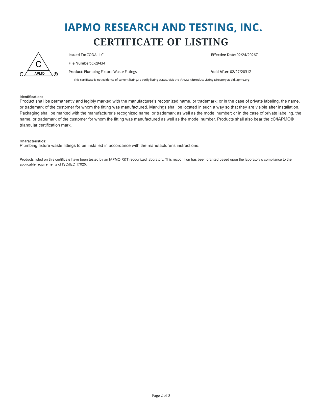 CODA can be used as a dirty arm to extend away from the P-trap to your new drain location. As show in International Plumbing Code, when CODA is installed with a traditional 2-inch shower drain, it can be extended up to 8 feet from the original drain.