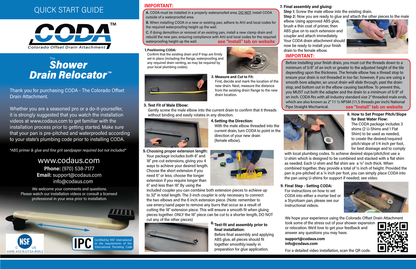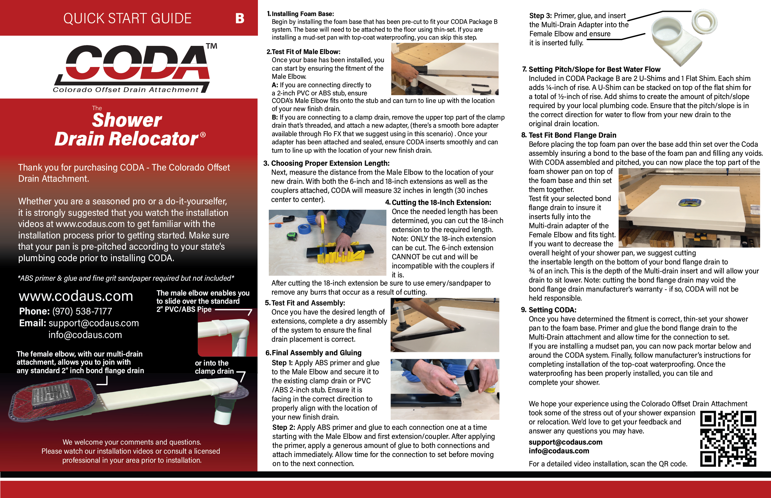 Disclaimer: These videos are provided for illustrative purposes only and are intended to offer a general overview of the CODA installation process. They do not represent a complete or exact installation procedure. Always refer to the full installation instructions included with the product, ensure compliance with all applicable local plumbing codes, and consult a licensed plumbing professional prior to installation.